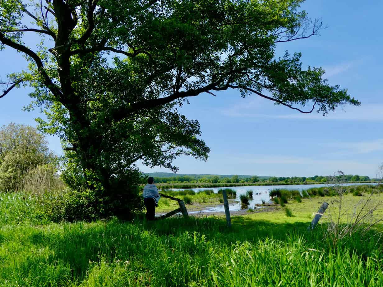 Ja, uns kamen einige Radfahrer entgegen, aber wir fanden die Tour dennoch spannend – denn von hier aus konnten wir eine Vielzahl von Vögeln in den Sumpfgebieten und kleinen Seen beobachten. Bis vor ein paar Jahren brütete hier auch ein Seeadlerpärchen, das haben wir aber leider nicht entdecken können. Etwa auf mittlerer Strecke biegt ein Weg ab, dem wir auch folgten.